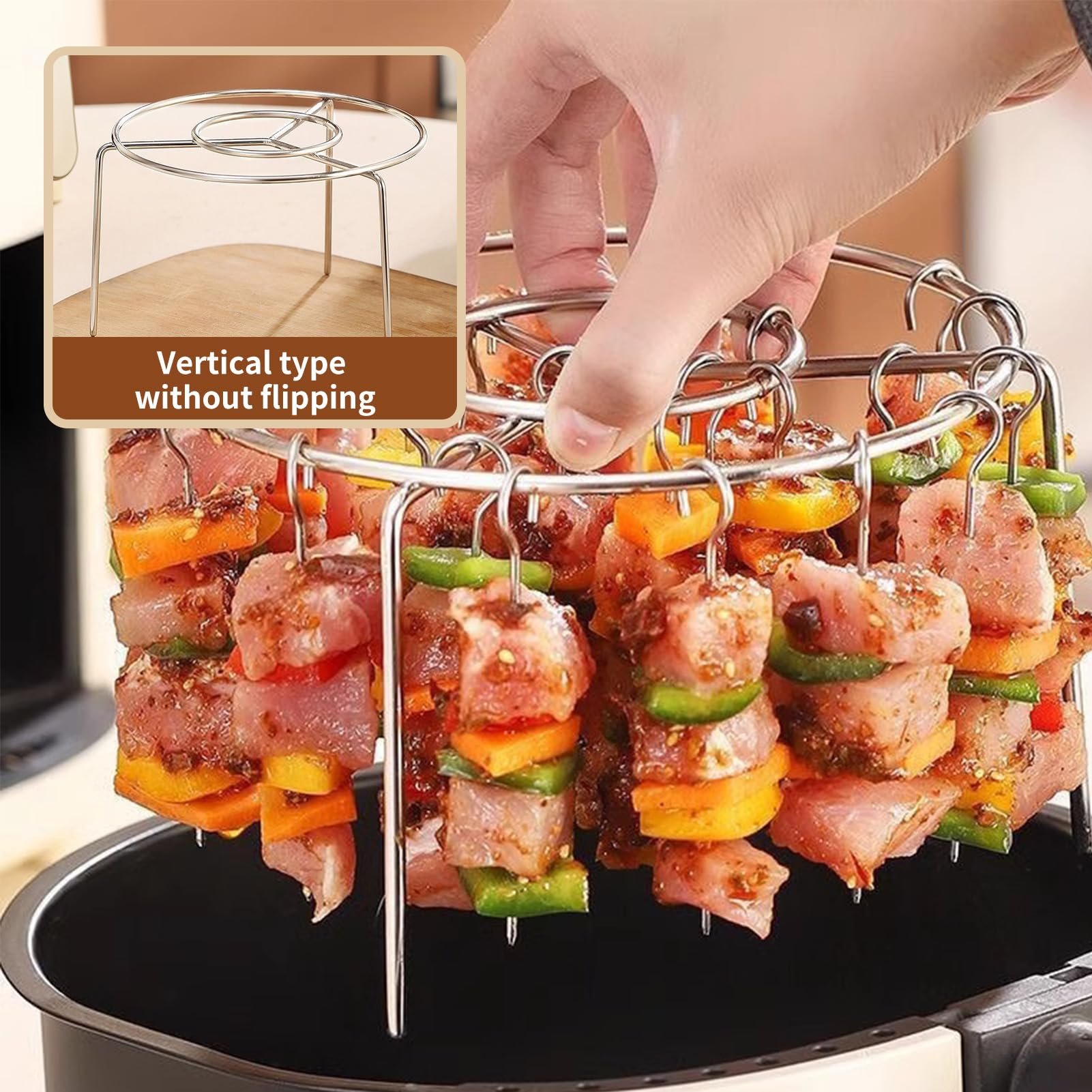 Stainless Steel Vertical Grill for air fryers. ovens. and more. 360° design cooks skewers and meats evenly—crispy outside. tender inside. No flipping needed. Easy versatility for any kitchen.